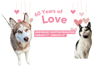 On February 14, 2026, we mark 60 years of love, compassion, and lifesaving, and we’re honoring the occasion with our 60 Years of Love Adoption Promotion.