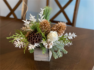 Your home will smell like the holidays are here with this fresh winter centerpiece! Spend a comfy evening learning how to create this woodsy container filled with fresh winter foliage, white florals, snow tipped pine cones & white branches like the birch found in the Northwoods of Michigan. Hosted by Floral Design Instructor, Janet Gallagher of Designs by Janet. Includes all materials & a glass of wine paired with Janet's expertise & guidance. Don't miss this beautiful & memorable experience!