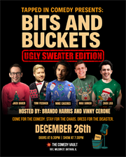 Bits and Buckets is back by popular demand — and this month, we’re adding a festive twist! This isn’t your average stand-up showcase. Each comic performs their regular set… but before they leave the stage, they’ll pull a random topic from a bucket and riff on it in the moment. Sharp material, spontaneous chaos, and pure fun.