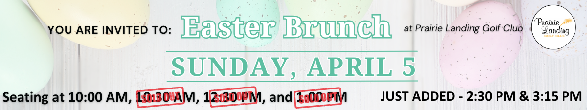 You are invited to Prairie Landing Golf Club’s Easter Brunch on Sunday, April 5, 2026! Meet and take pictures with the Easter Bunny!