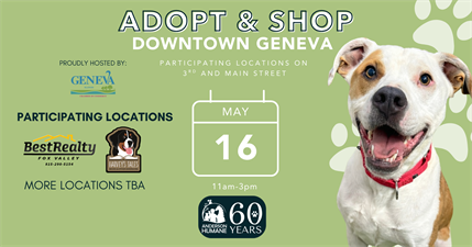 Join us for a tail-wagging tour of downtown Geneva and meet some of the adorable dogs and puppies from Anderson Humane along the way!